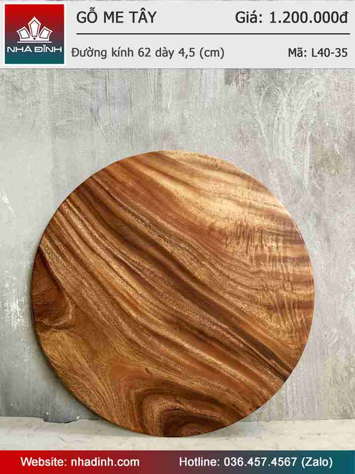 Mặt Bàn Tròn Gỗ Me Tây Nguyên Khối Đường Kính 62 Dày 4,5 (cm)