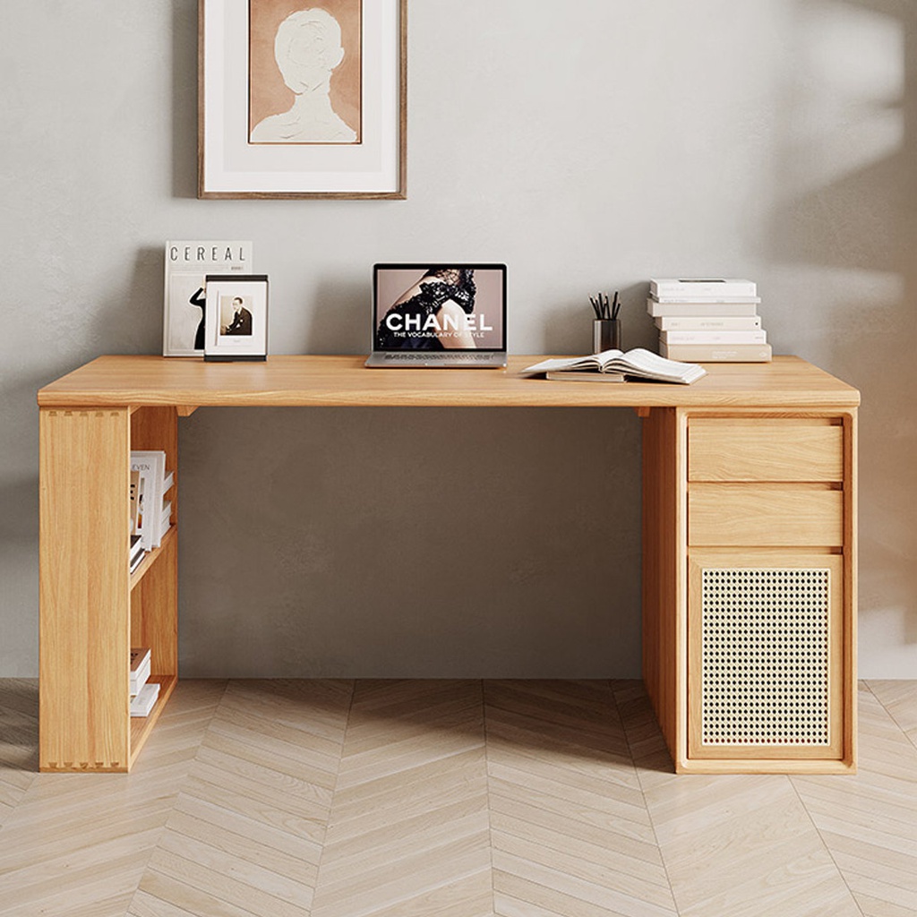Bàn Làm Việc Kết Hợp Lưới Mây Gỗ Sồi Cao 75 Rộng 140 Sâu 60 (cm)