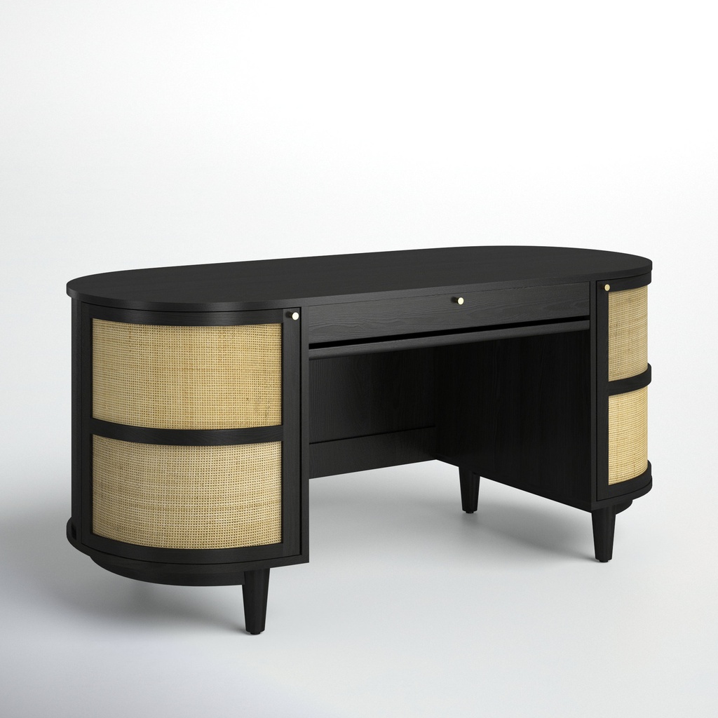 Bàn Làm Việc Sơn Đen Kết Hợp Mây Gỗ Sồi Cao 76 Rộng 152 Sâu 66 (cm)
