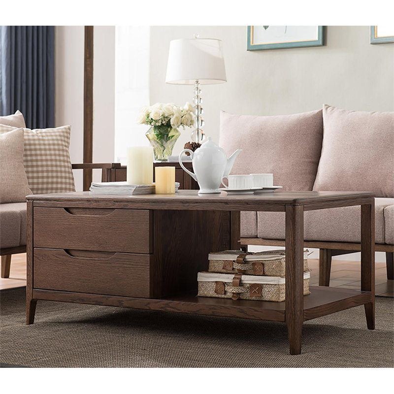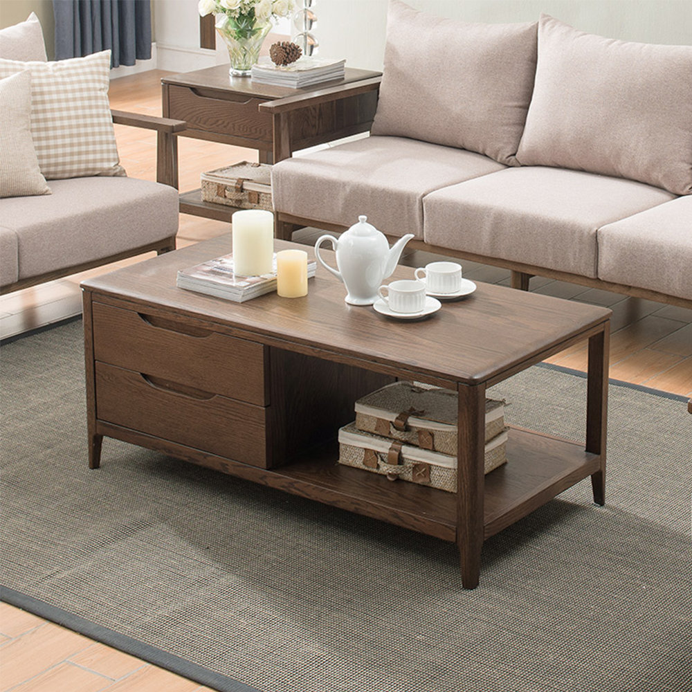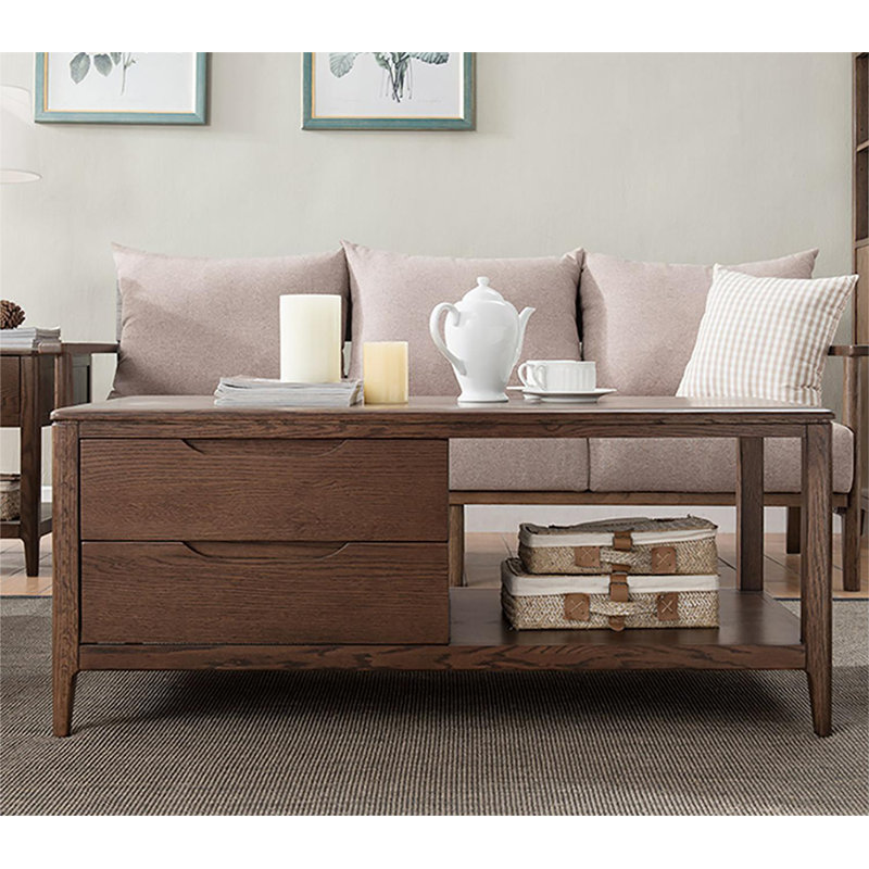 Bàn Trà 2 Tầng 4 Hộc Gỗ Sồi