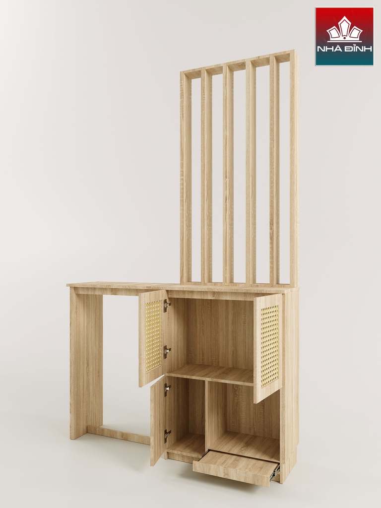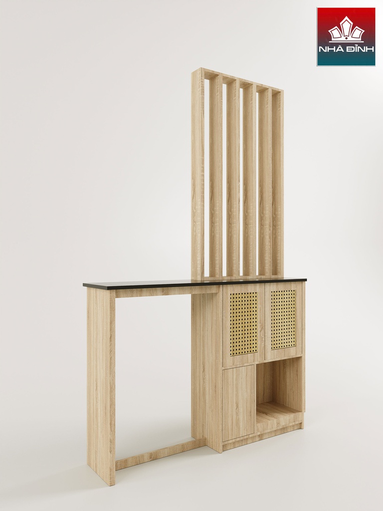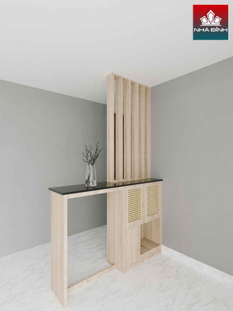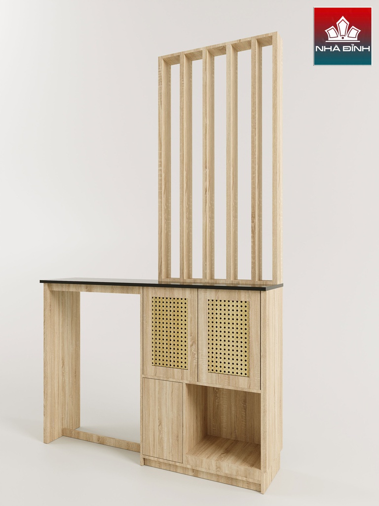 Kệ Vách Ngăn Phòng Khách Gỗ Cao Su Veneer Sồi