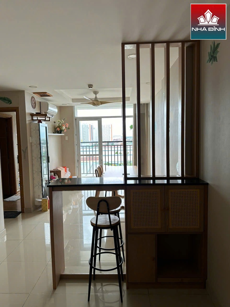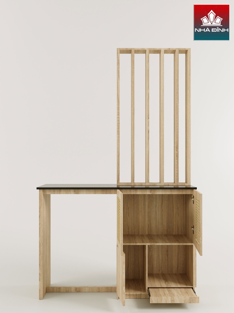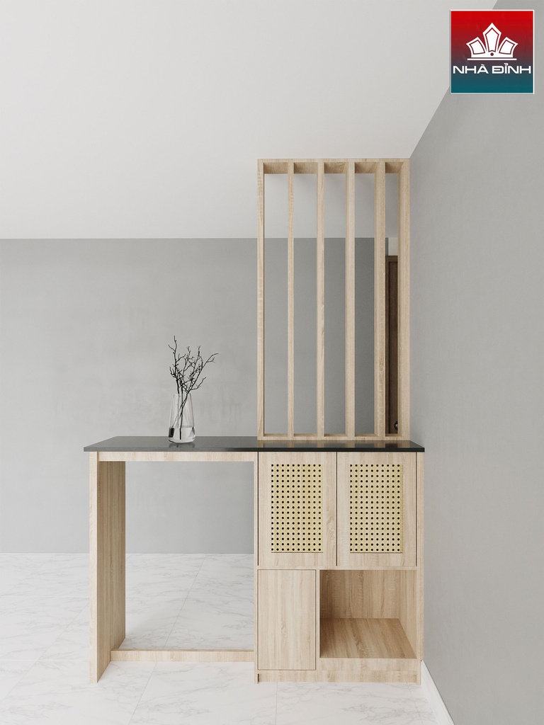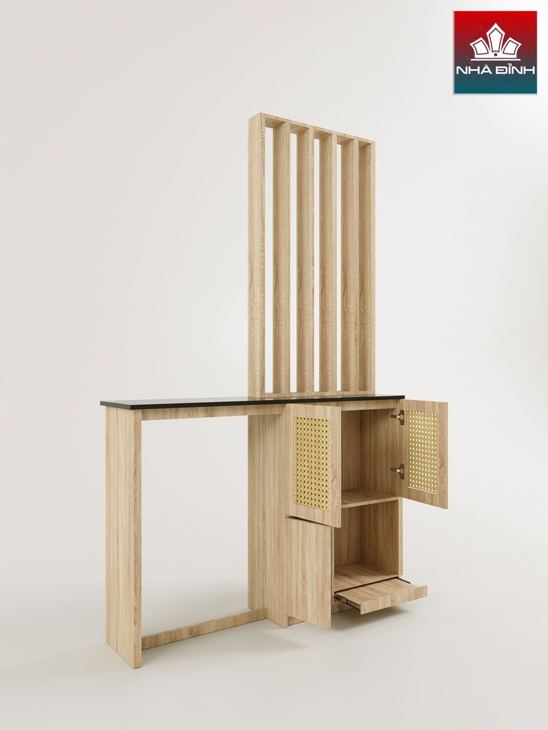 Kệ Vách Ngăn Phòng Khách Gỗ Cao Su Veneer Sồi
