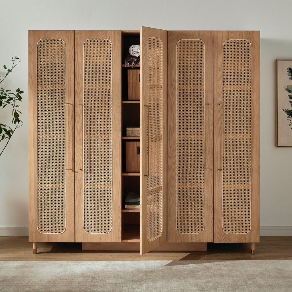 Chất liệu: Mây + Gỗ Sồi (Oak)_36% + Gỗ Cao Su Veneer Sồi_64%