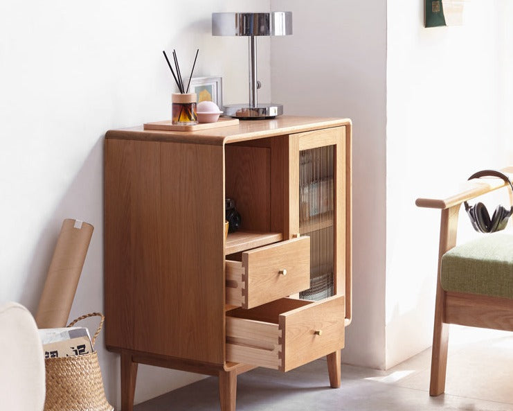 Tủ Trang Trí Gỗ Sồi Kết Hợp Kính Rộng 65 Sâu 40 Cao 80 (сm)