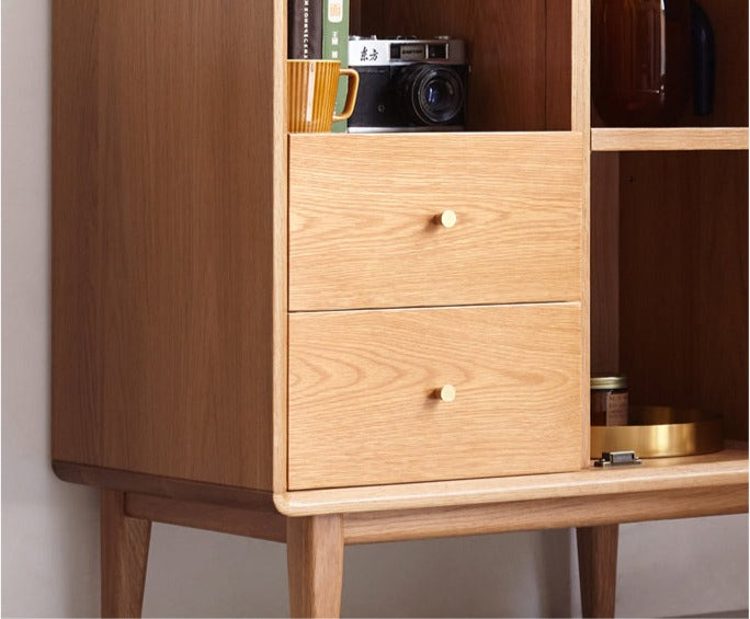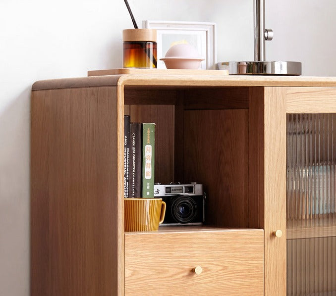 Tủ Trang Trí Gỗ Sồi Kết Hợp Kính