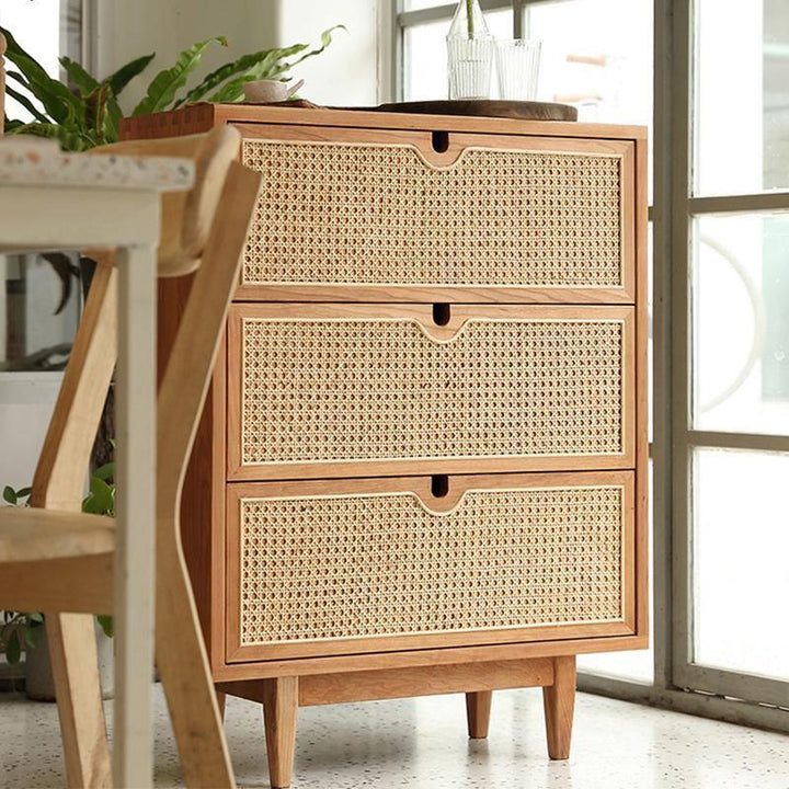 Tủ Quần Áo Gỗ Sồi Kết Hợp Mây Cao 115 Rộng 70 Sâu 40 (cm)