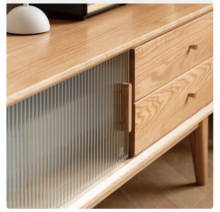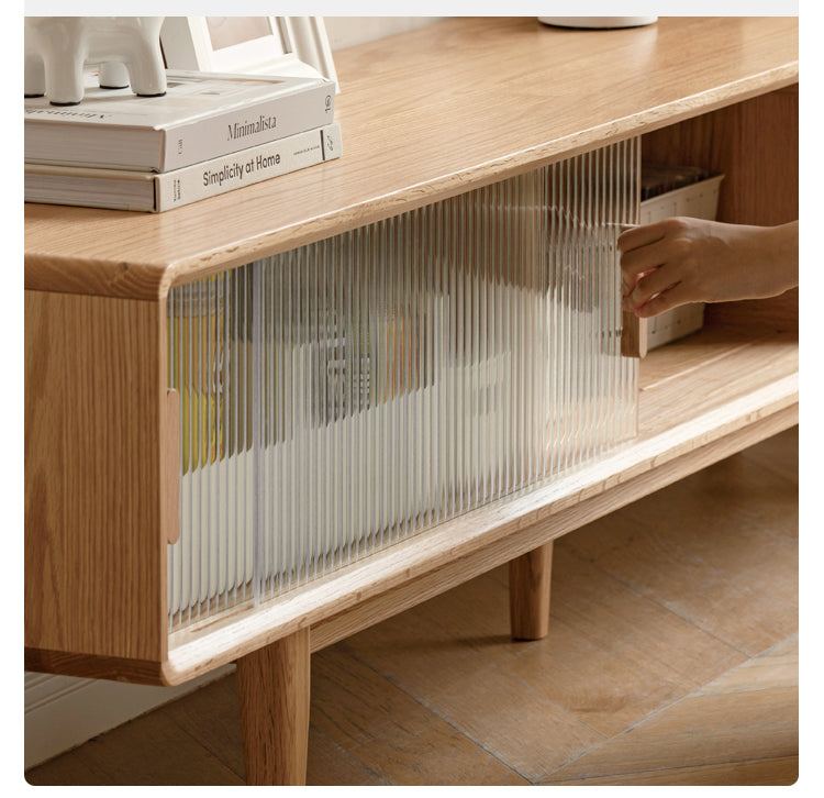 Tủ Tivi Gỗ Sồi Kết Hợp Cánh Cửa Lùa Kính