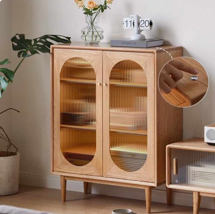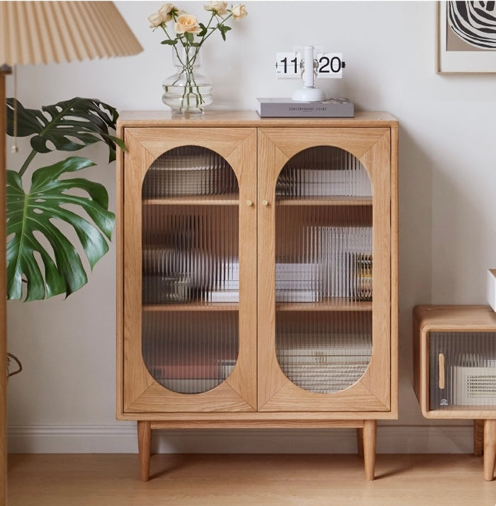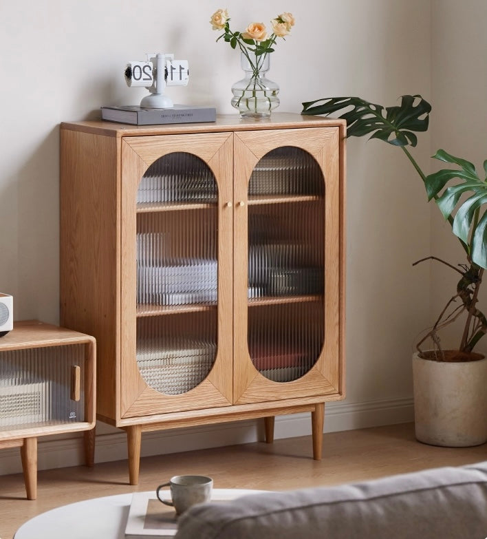 Tủ Trang Trí Gỗ Sồi Kết Hợp Kính