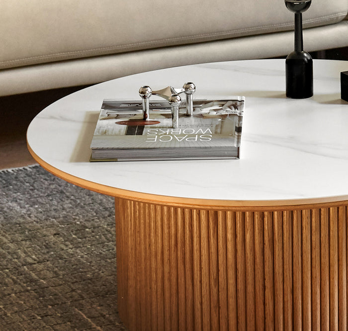 Bàn Coffee Gỗ Sồi Kết Hợp Mặt Đá Đường Kính 85 Cao 35 (сm)