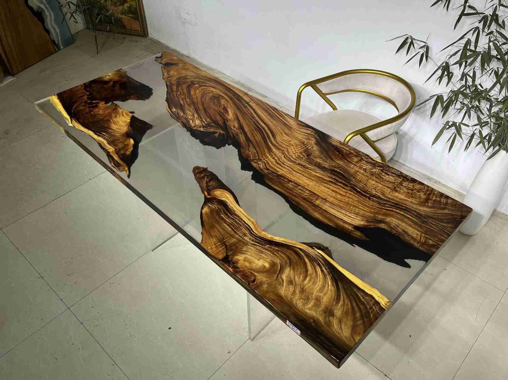 Bàn Epoxy Gỗ Me Tây Dài 220 Rộng 80 Cao 75 (cm)