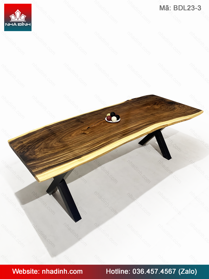 Bàn Gỗ Me Tây Nguyên Khối Dài 220 Rộng 89-82-80 Dày 5 (cm)