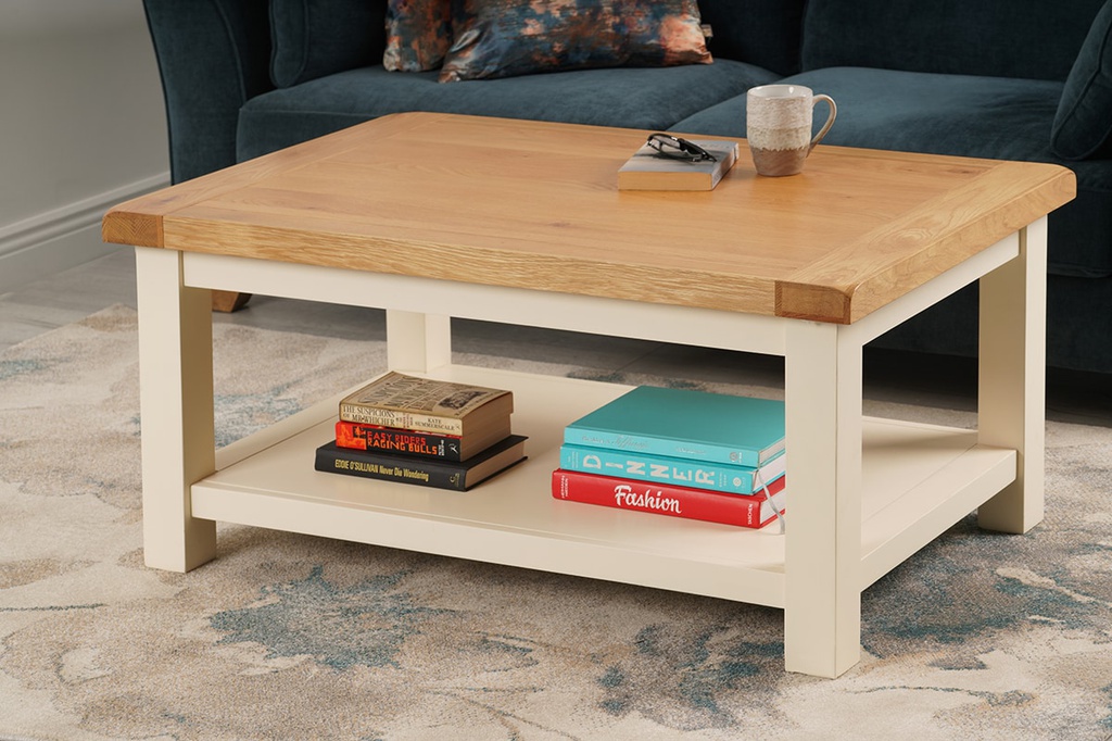 Bàn Trà Gỗ Sồi Chân Sơn Trắng Rộng 70 Dài 110 Cao 50 (cm)