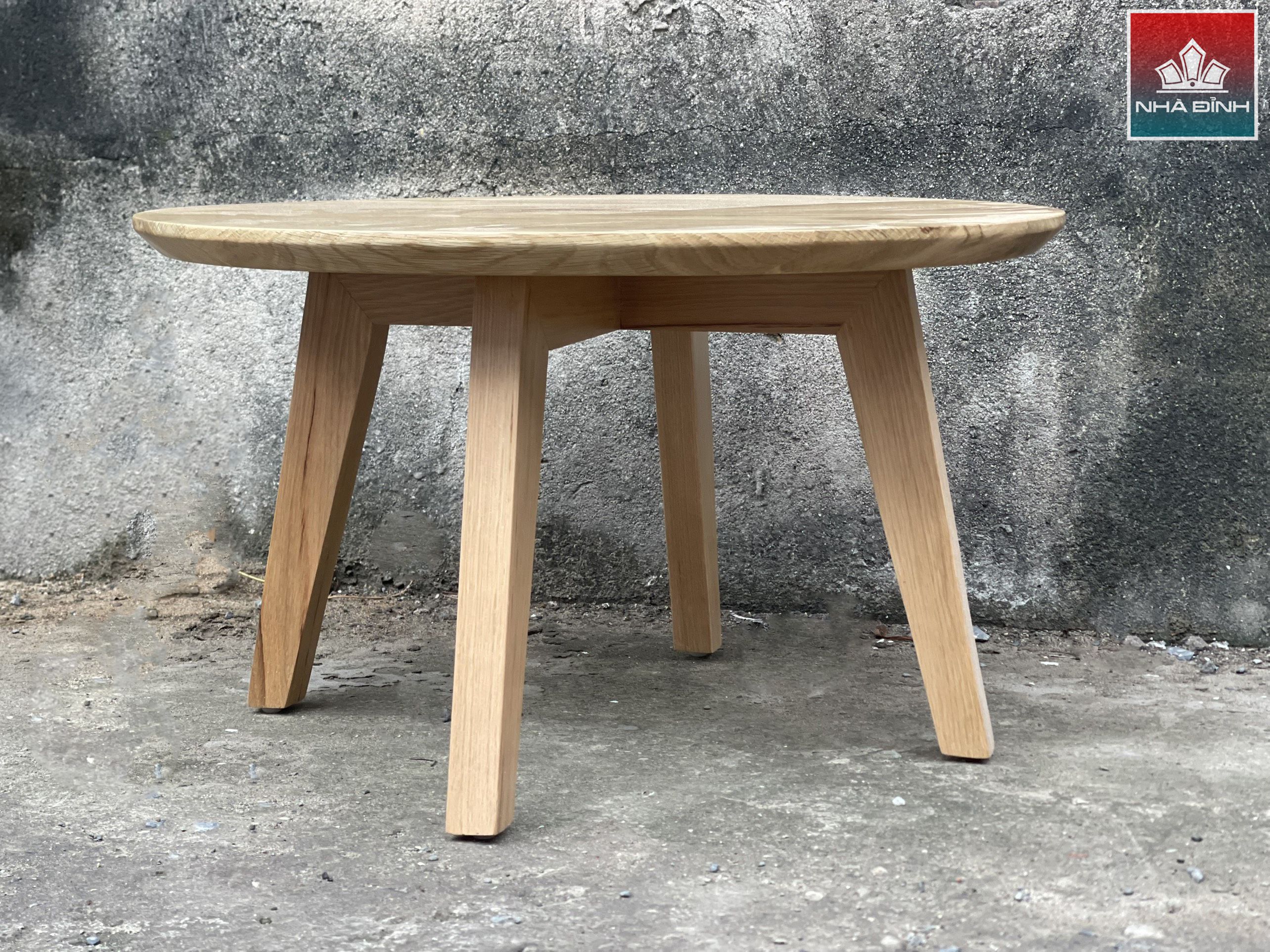 Bàn Trà Gỗ Tần Bì Chân Gỗ Đường Kính 70 Dày 4 Cao 45 (cm)