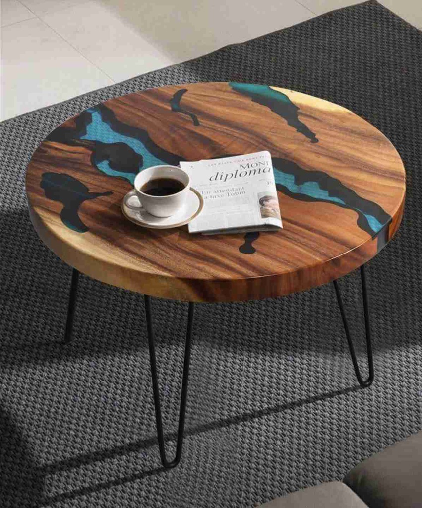 Bàn Trà Tròn Epoxy Gỗ Me Tây Đường Kính 60 Cao 45 (cm)