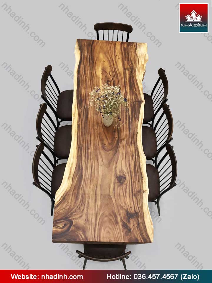 Bộ Bàn 8 Ghế Gỗ Me Tây Nguyên Khối Dài 238 Rộng 88-71 Cao 76 Dày 7 (cm)