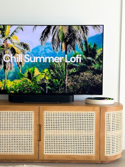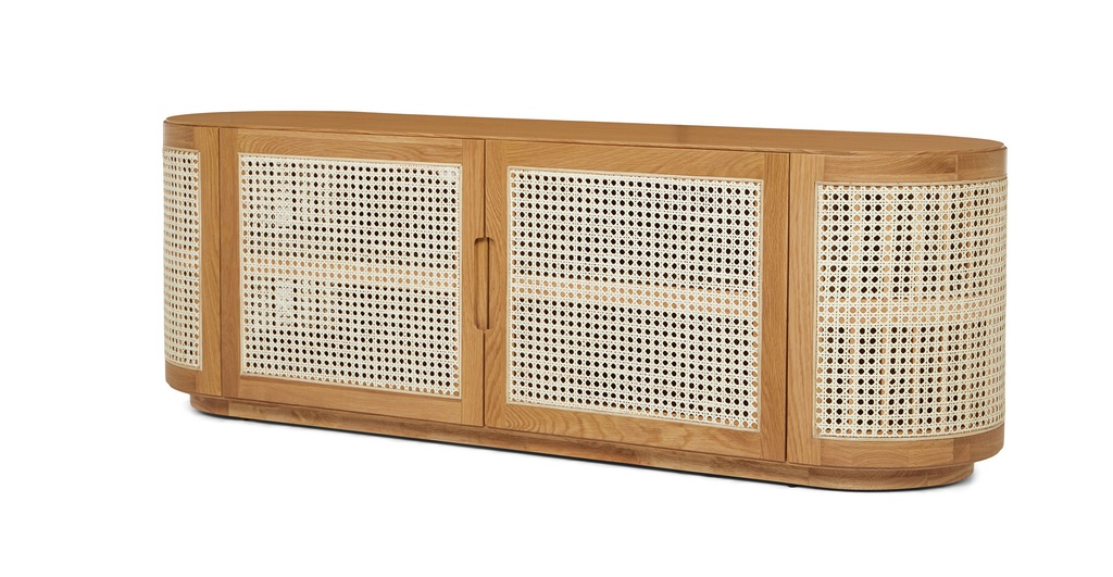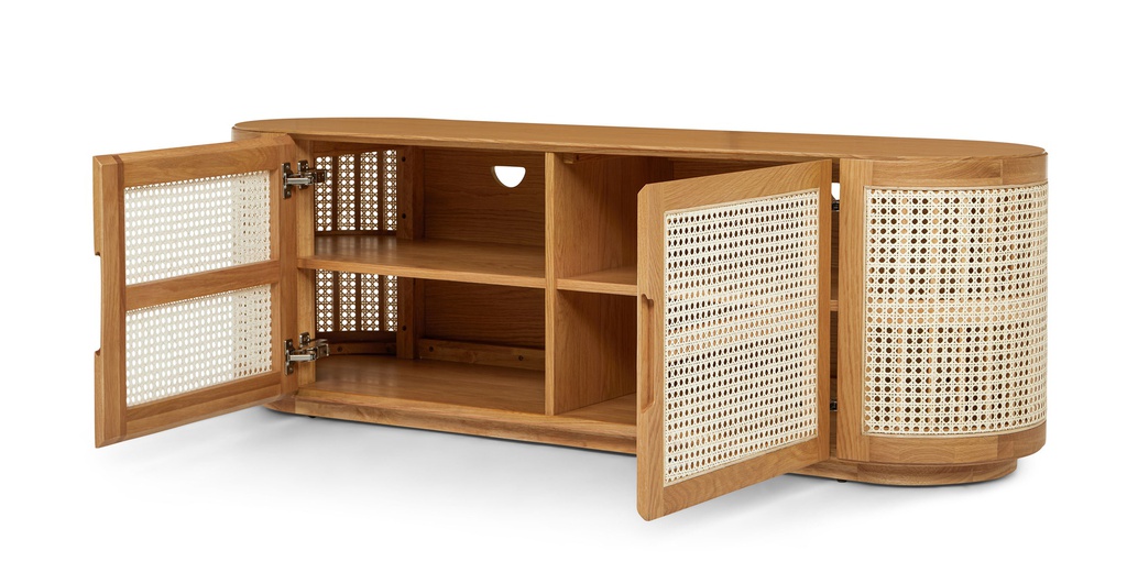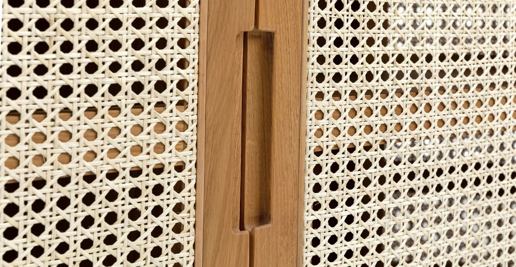 Kệ Tivi Gỗ Sồi Kết Hợp Lưới Mây Mắt Cáo