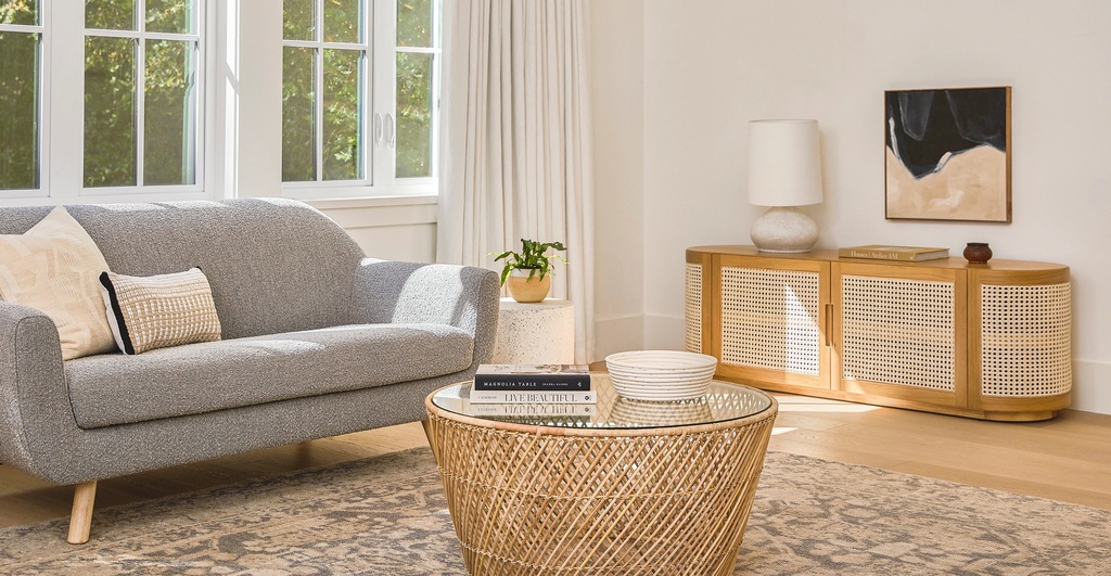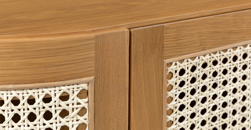 Chất liệu: Gỗ Sồi (Oak) + Mây + Venner Sồi