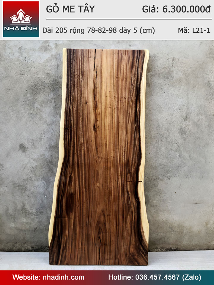 Mặt Bàn Ăn Bàn Họp Gỗ Me Tây Nguyên Khối Dài 205 Rộng 78-82-98 Dày 5 (cm)