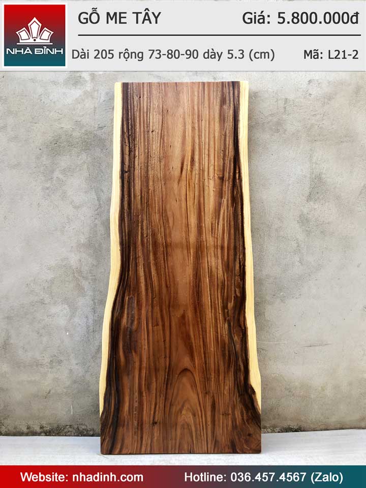Mặt Bàn Ăn Bàn Làm Việc Gỗ Me Tây Nguyên Khối Dài 205 Rộng 73-80-90 Dày 5.3 (cm)