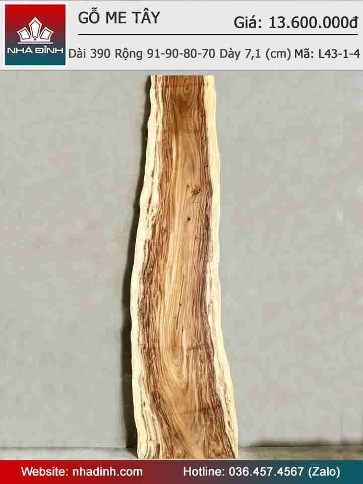 Mặt Bàn Ăn Gỗ Me Tây Nguyên Khối Dài 390 Rộng 91-90-80-70 Dày 7.1 (cm)