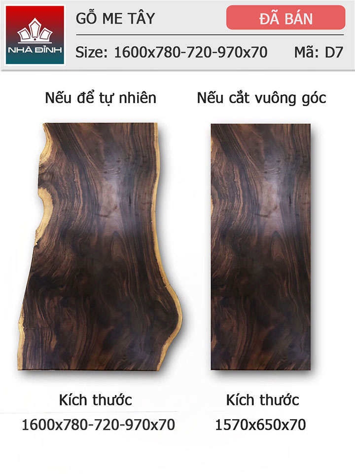 Mặt bàn gỗ Me Tây nguyên khối dài 1m6 rộng 78 - 72 - 97 dày 7 (cm)