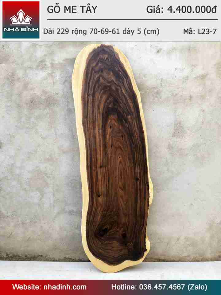 Mặt Bàn Gỗ Me Tây Nguyên Khối Dài 229 Rộng 70-69-61 Dày 5 (cm)
