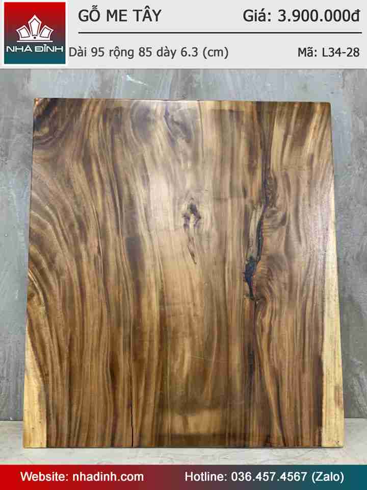 Mặt Bàn Gỗ Me Tây Nguyên Khối Dài 95 Rộng 85 Dày 6.3 (cm)