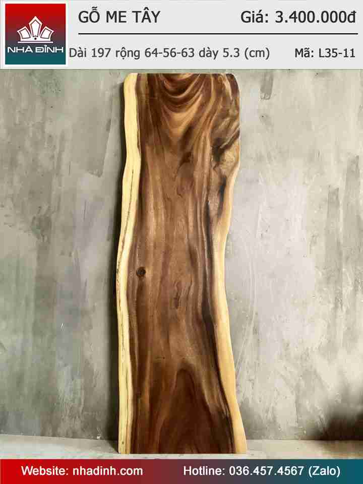 Mặt Bàn Gỗ Me Tây Nguyên Khối Dài 197 Rộng 64-56-63 Dày 5.3 (cm)