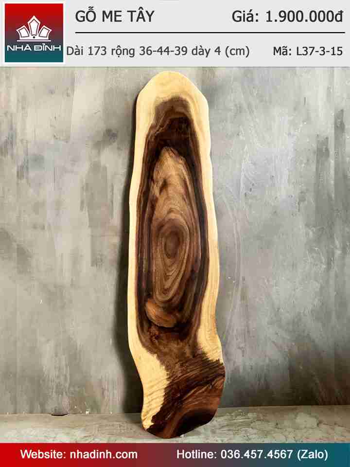 Mặt Bàn Gỗ Me Tây Nguyên Khối Dài 173 Rộng 36-44-39 Dày 4 (cm)