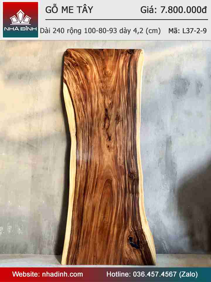 Mặt Bàn Gỗ Me Tây Nguyên Khối Dài 230 Rộng 93-77-83 Dày 5.1 (cm)