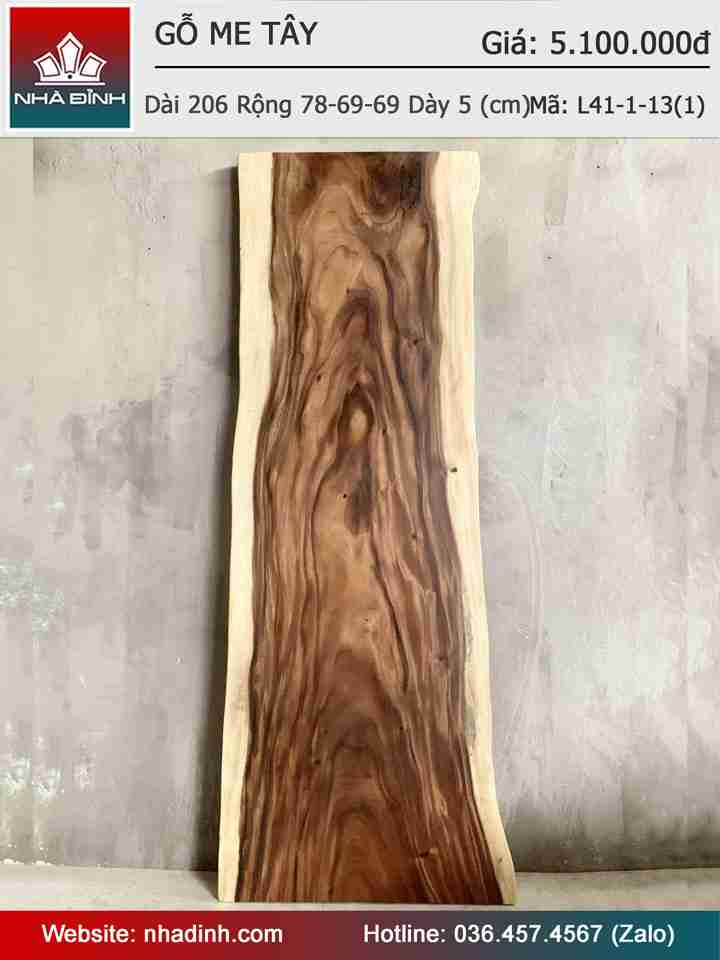 Mặt Bàn Gỗ Me Tây Nguyên Khối Dài 206 Rộng 78-69-69 Dày 5 (cm)