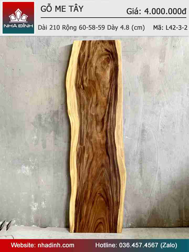 Mặt Bàn Gỗ Me Tây Nguyên Khối Dài 210 Rộng 60-58-59 Dày 4.8 (cm)