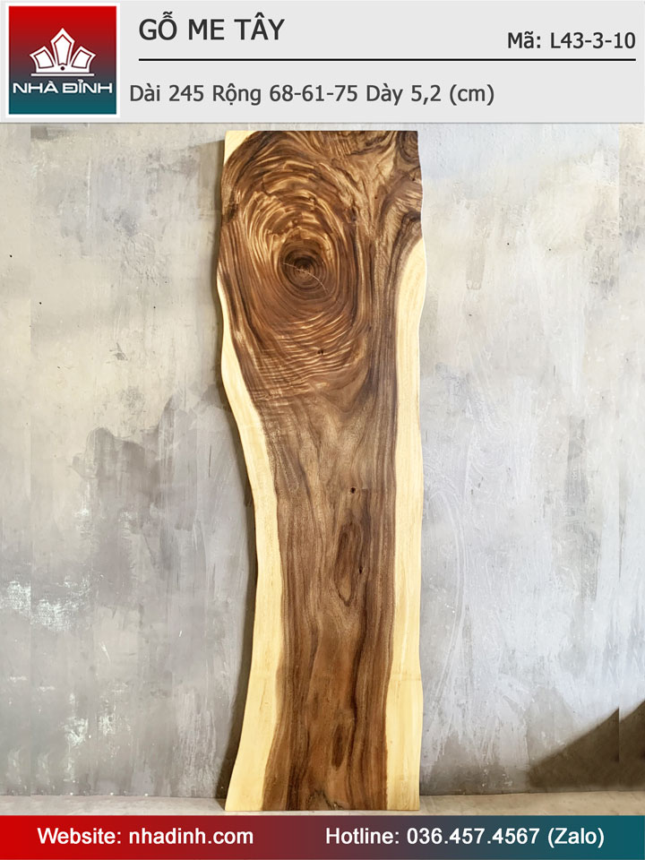 Mặt Bàn Gỗ Me Tây Nguyên Khối Dài 243 Rộng 68-61-75 Dày 5.2 (cm)