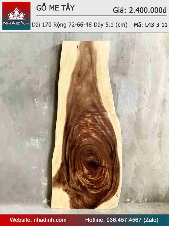 Mặt Bàn Gỗ Me Tây Nguyên Khối Dài 170 Rộng 72-66-48 Dày 5.1 (cm)
