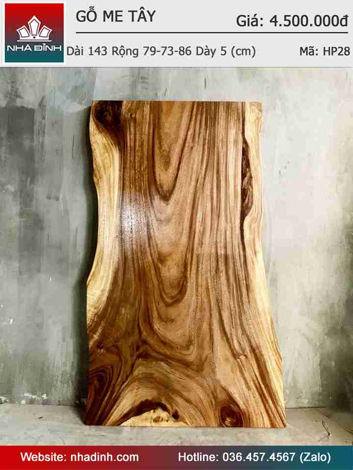 Mặt Bàn Gỗ Me Tây Nguyên Khối Dài 143 Rộng 79-73-86 Dày 5 (cm)