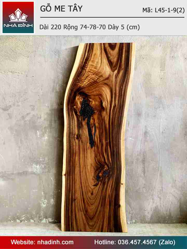 Mặt Bàn Gỗ Me Tây Nguyên Khối Dài 220 Rộng 74-78-70 Dày 5 (cm)