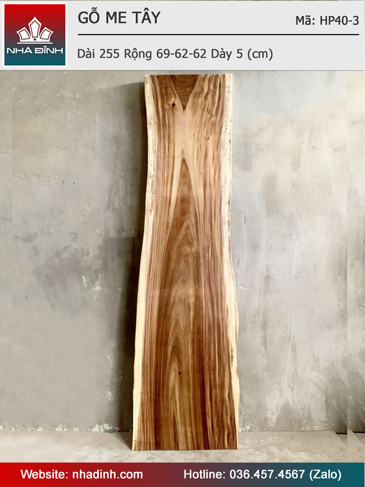 Mặt Bàn Gỗ Me Tây Nguyên Khối Dài 255 Rộng 69-62-62 Dày 5 (cm)