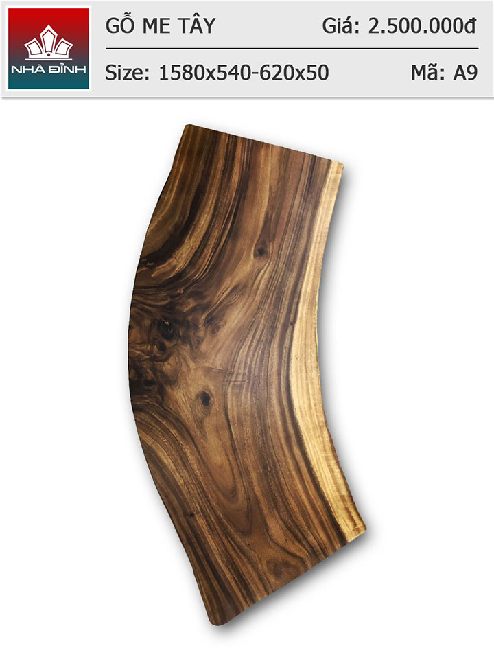 Mặt bàn gỗ Me Tây nguyên khối dài 1m58 rộng 54 - 62 dày 5 (cm)