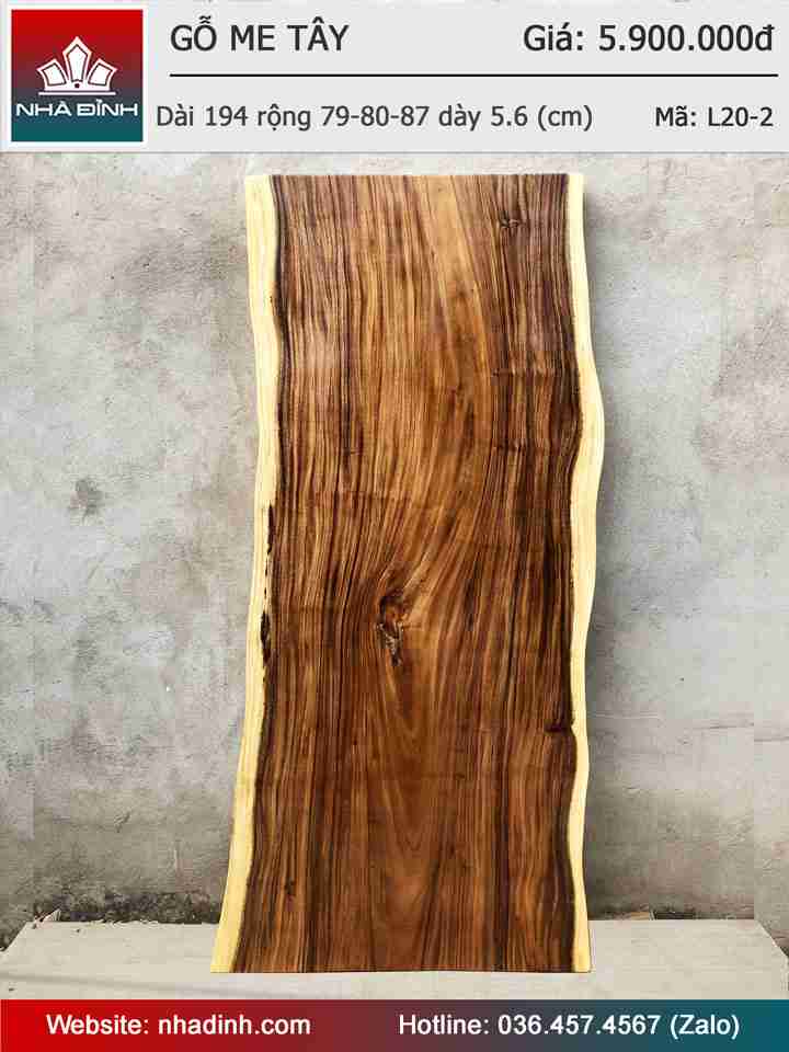 Mặt Bàn Gỗ Me Tây Nguyên Khối Dài 194 Rộng 82-84-90 Dày 5.6 (cm)
