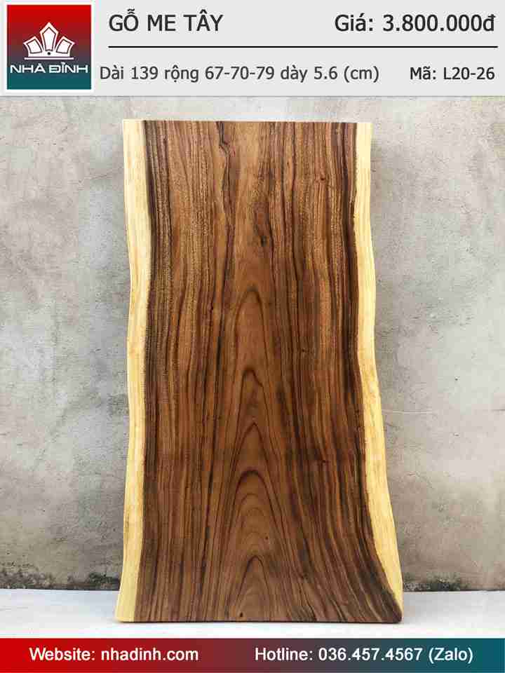 Mặt Bàn Gỗ Me Tây Nguyên Khối Dài 139 Rộng 67-70-79 Dày 5.6 (cm)