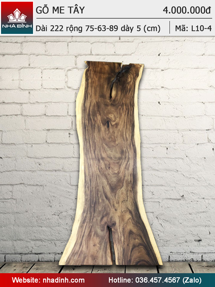 Mặt bàn gỗ Me Tây nguyên tấm dài 222 rộng 75-63-89 dày 5 (cm)