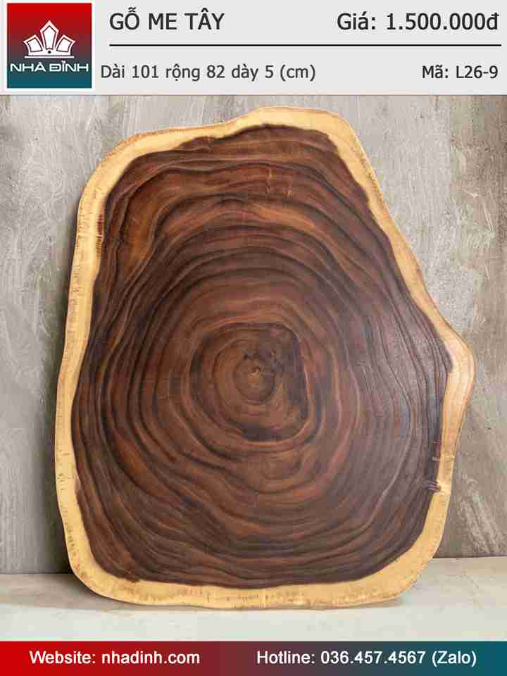 Mặt Bàn Sofa Gỗ Me Tây Nguyên Khối Dài 101 Rộng 82 Dày 5 (cm)