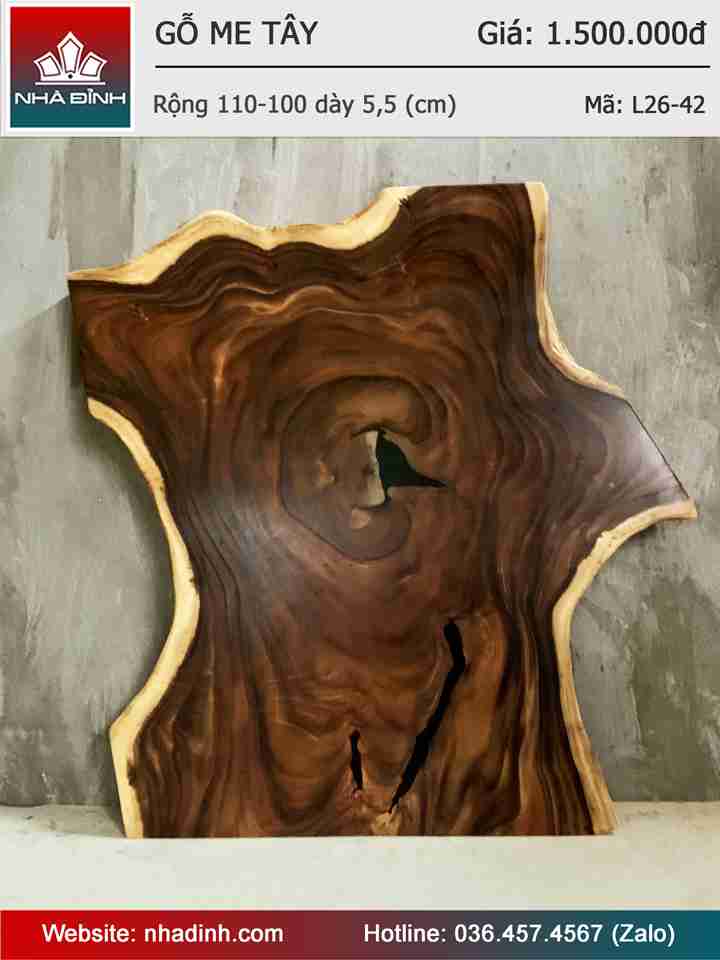 Mặt Bàn Sofa Gỗ Me Tây Nguyên Khối Rộng 110-100 Dày 5.5 (cm)