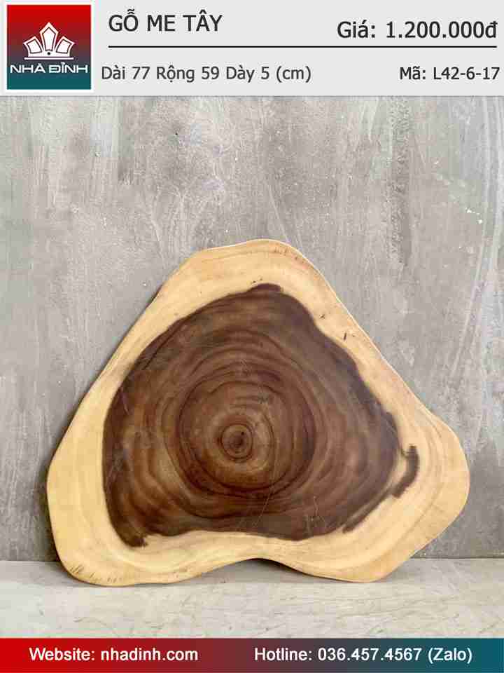 Mặt Bàn Trà Gỗ Me Tây Nguyên Khối Dài 77 Rộng 59 Dày 5 (cm)