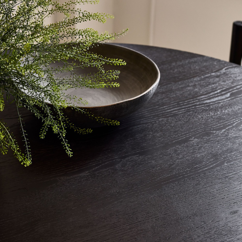 Bàn Ăn Tròn Gỗ Sồi Sơn Đen Đường Kính 152 Cao 75 (cm)