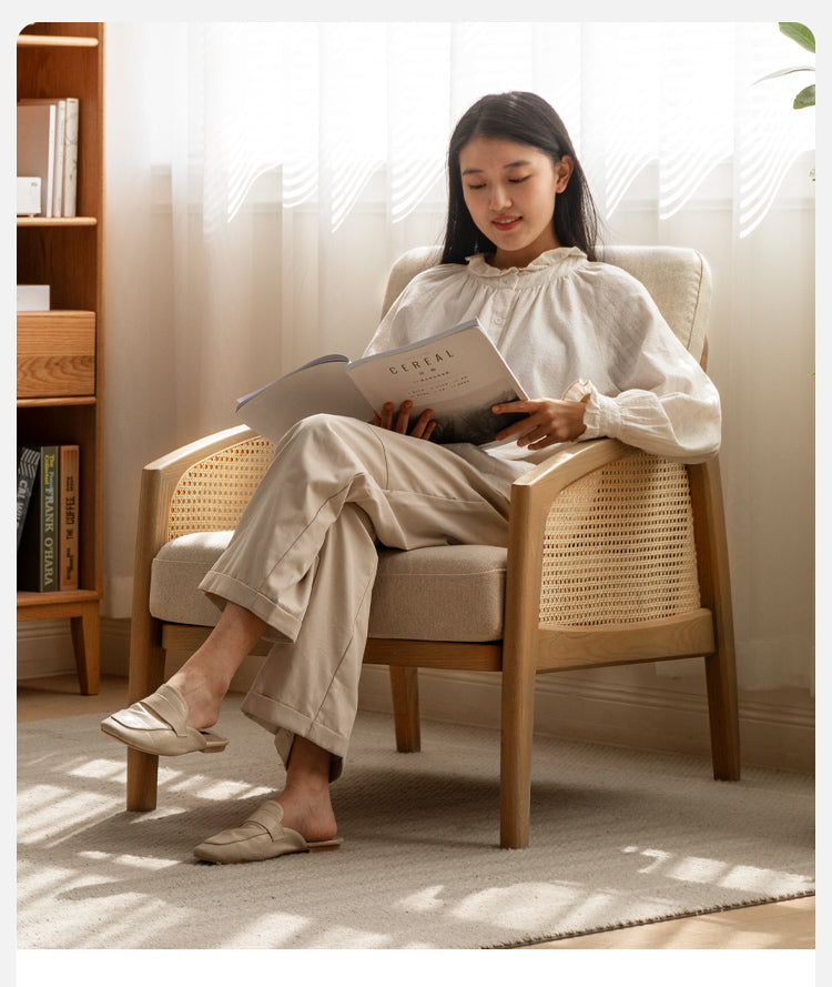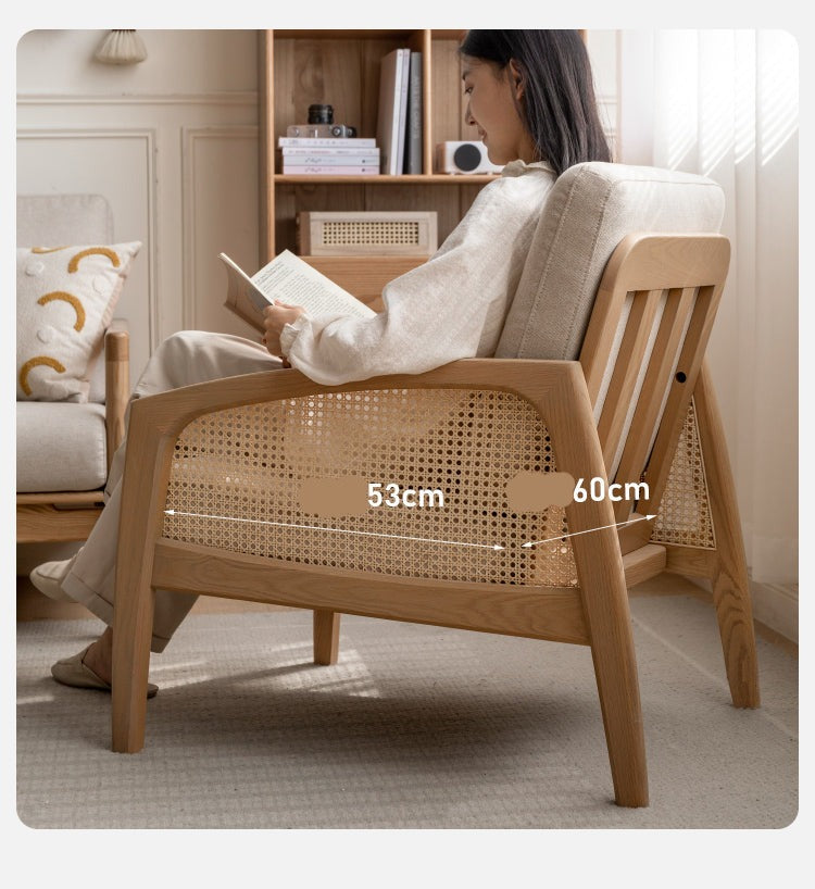 Chất liệu: Nệm + Gỗ Sồi (Oak) + Mây