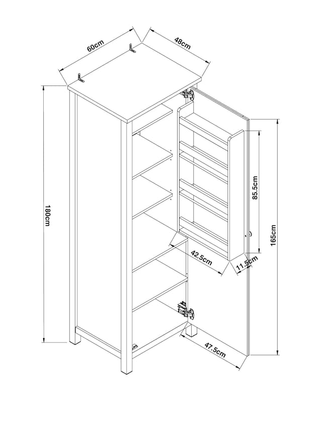Kích Thước: Cao 180 Ngang 60 Rộng 48 (cm)
