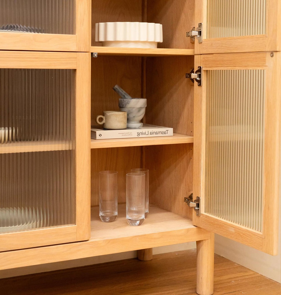Chất liệu: Kính 5li Sọc Mài + Gỗ Sồi (Oak)_14% + Gỗ Cao Su Veneer Sồi_86%