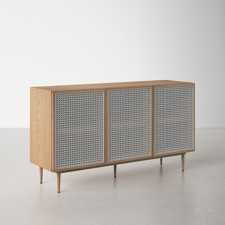 Tủ Trang Trí 3 Cánh Kết Hợp Mây Gỗ Sồi Cao 85 Rộng 150 Sâu 45 (cm)